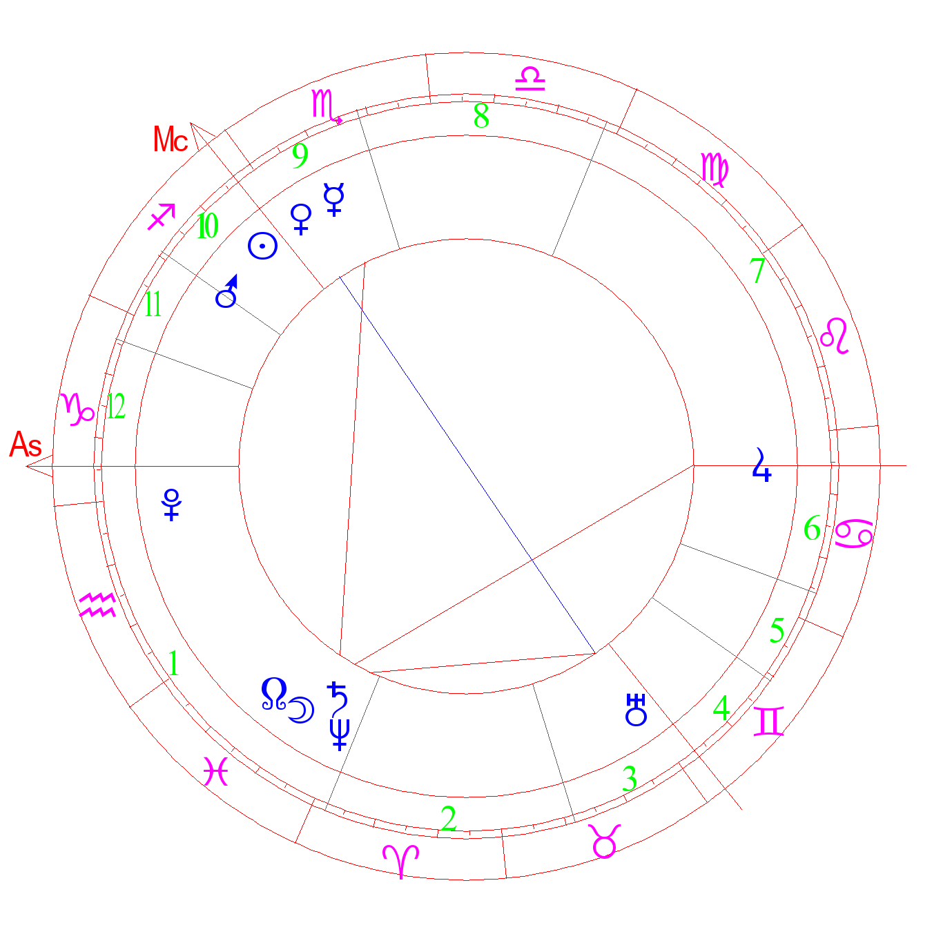 Smooth, calm temper. Laziness, apathy. Wedded bliss (ASA). Great love, moderation, peacefulness, sacrifice. If there is damage of the Sun, Leo, and the 5th house - heart diseases. The degree of Saturn (Kefer). Expressiveness of speech (deVore)
