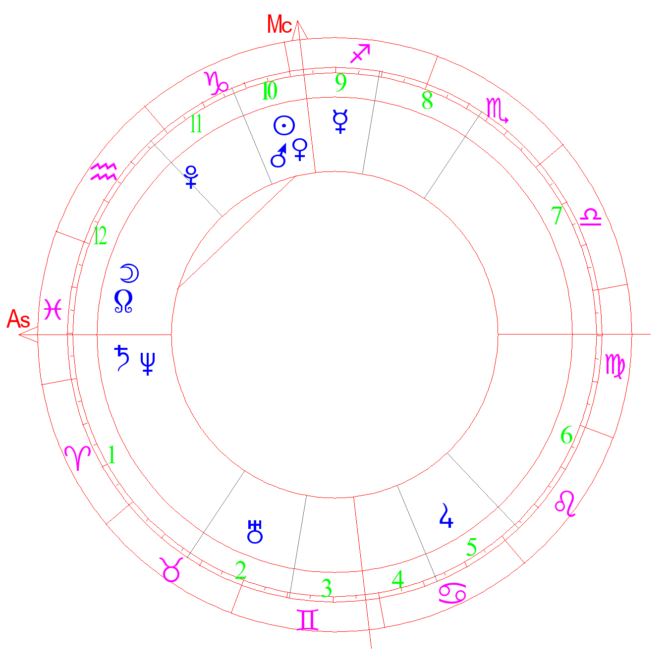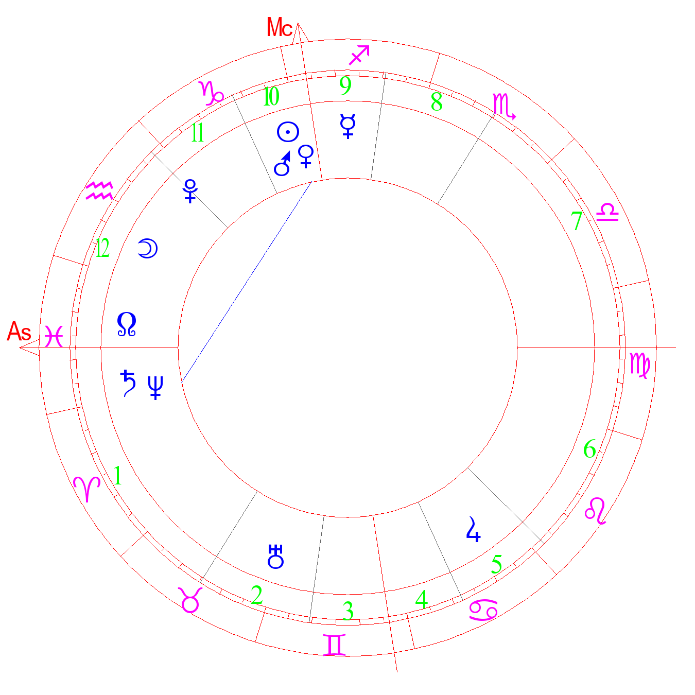 Градус гениальности, проникновения в будущее, реформаторства. Градус расчета, калькуляции, энергии. Способность к наукам, прекрасный престиж. Может давать бездетность (АША). Хитрость, смелость, серьезность, нарушение зрения. Градус Марса (Кефер). Градус, связанный со зрением (Девор)